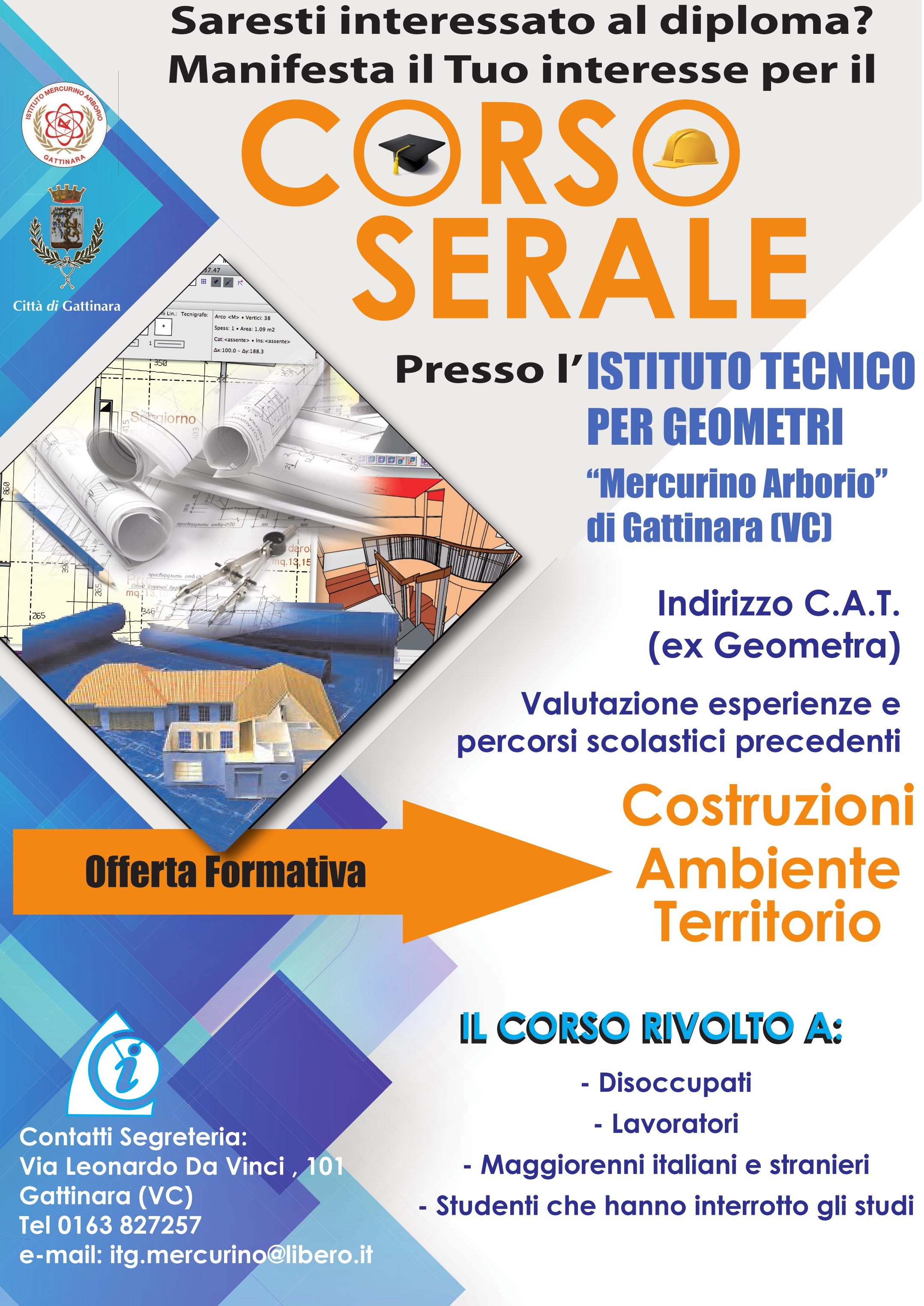«Per questo l’Istituto Superiore Mercurino di Gattinara – spiega il dirigente scolastico Dott. Lovatto Alberto. – è interessato ad attivare un corso serale per adulti finalizzato al conseguimento del diploma nell'indirizzo C.A.T. Costruzioni – Ambiente – Territorio (ex geometra) ».